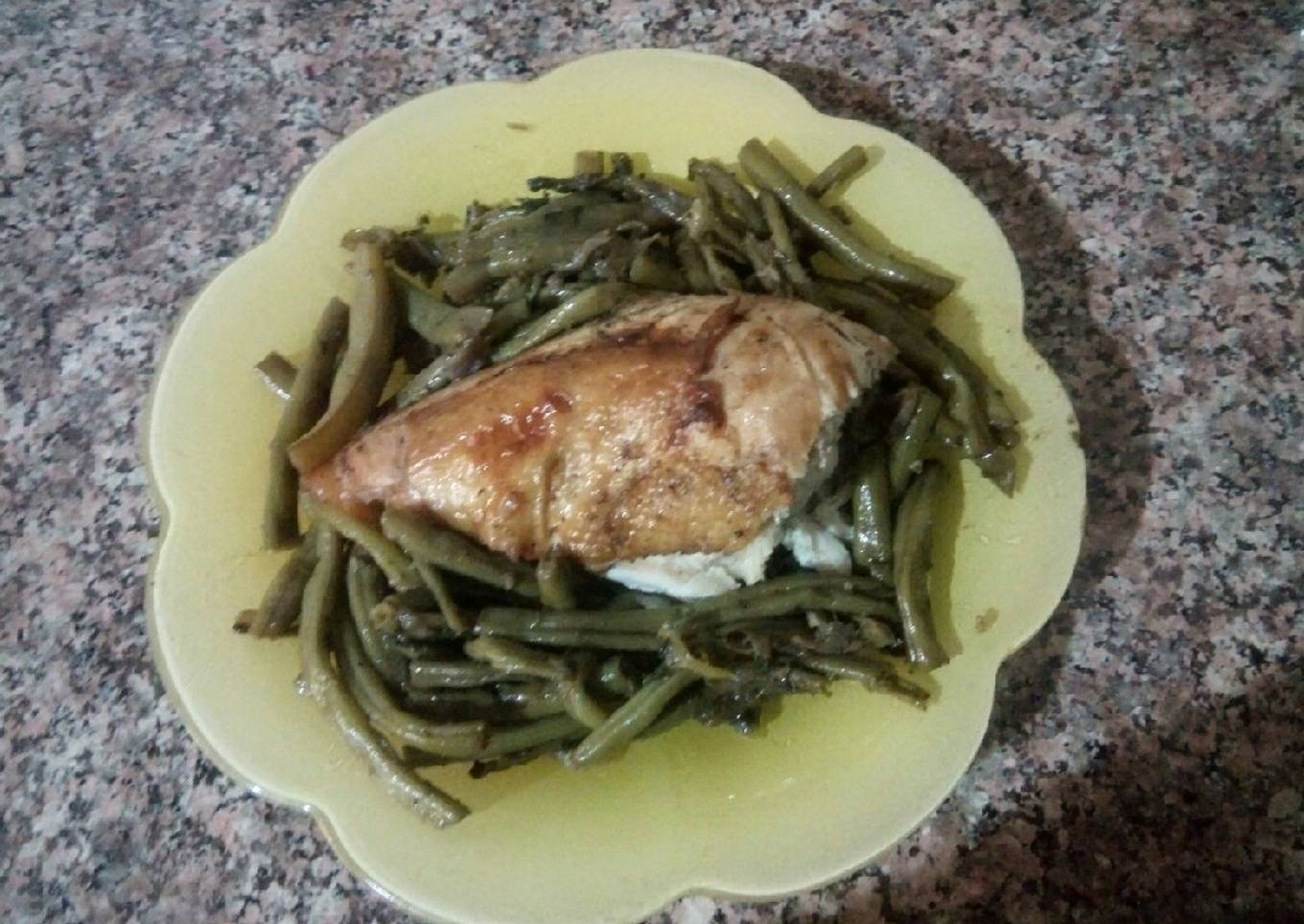 To begin with this recipe, we must prepare a few components. You can cook Haricot au poulet using 6 ingredients and 3 steps. Here is how you cook it.