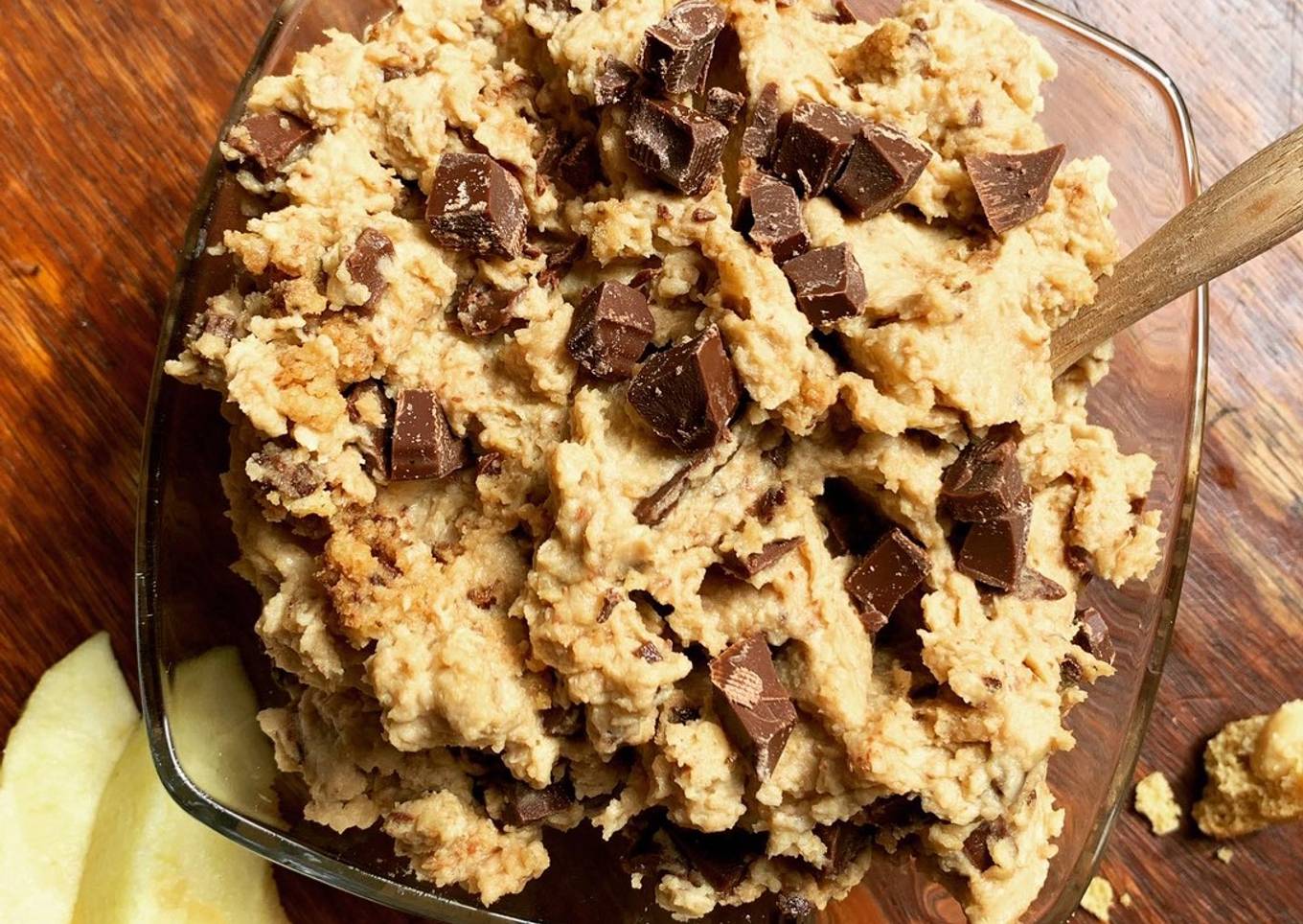 Hors de question d'y tremper des carottes ou du pain pita comme dans du houmous traditionnel. Il s'agit d'un dessert et on le traite comme tel en le mangeant avec des quartiers de pommes, des morceaux de fraises ou, pour la version pas régime du tout, en y trempant des cookies ou autres biscuits ! 😋