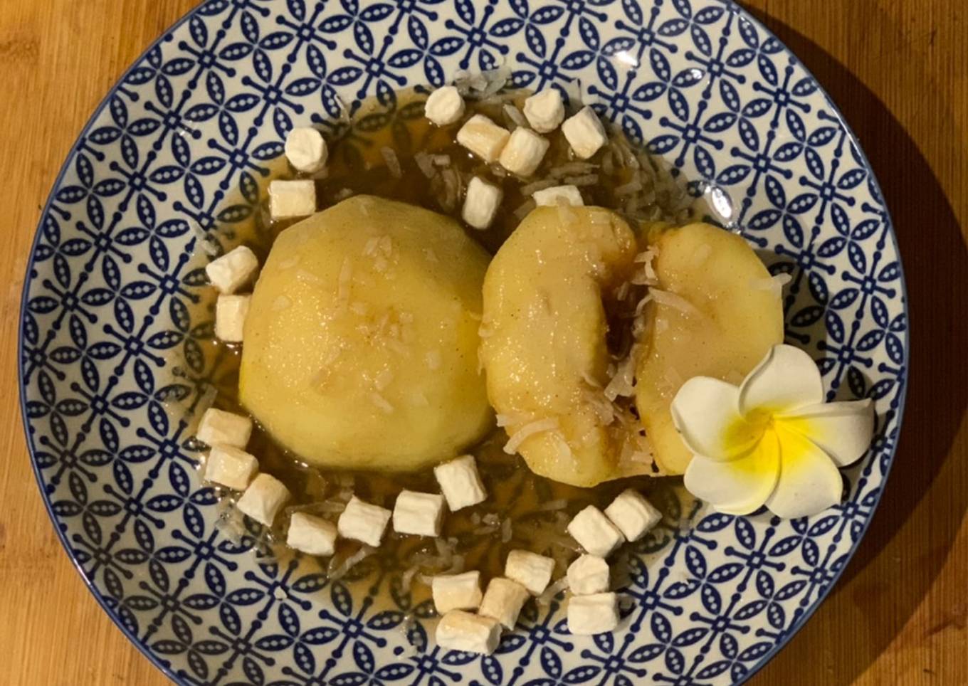 - Placer la pomme et l’arroser du sirop des deux côtés