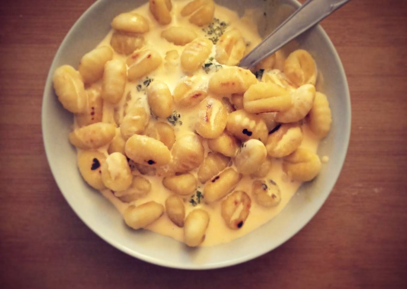 Au menu de ce soir , une recette gourmande et réconfortante : des gnocchis aux épinards , sauce au cheddar.