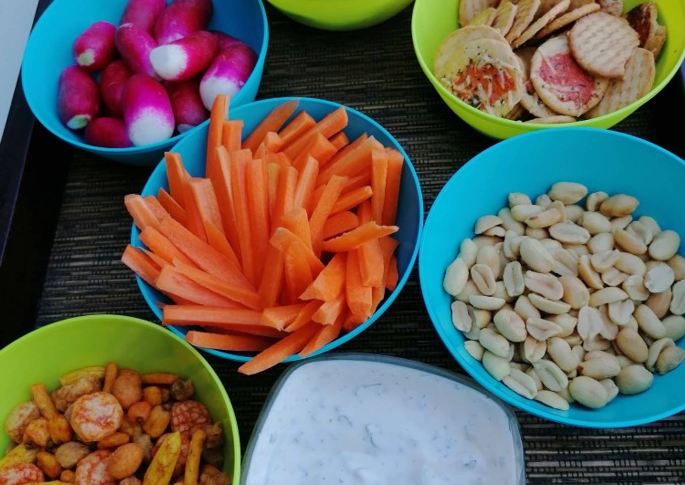 - J'essaie de proposer toujours une quantité égale de légumes et de crackers pour alléger le moment apéritif