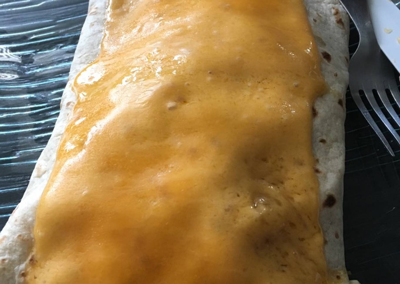 - Pliée la galette en rectangle, retournez la pour bien fermer les bords et déposez 2 tranches de cheddar dessus.